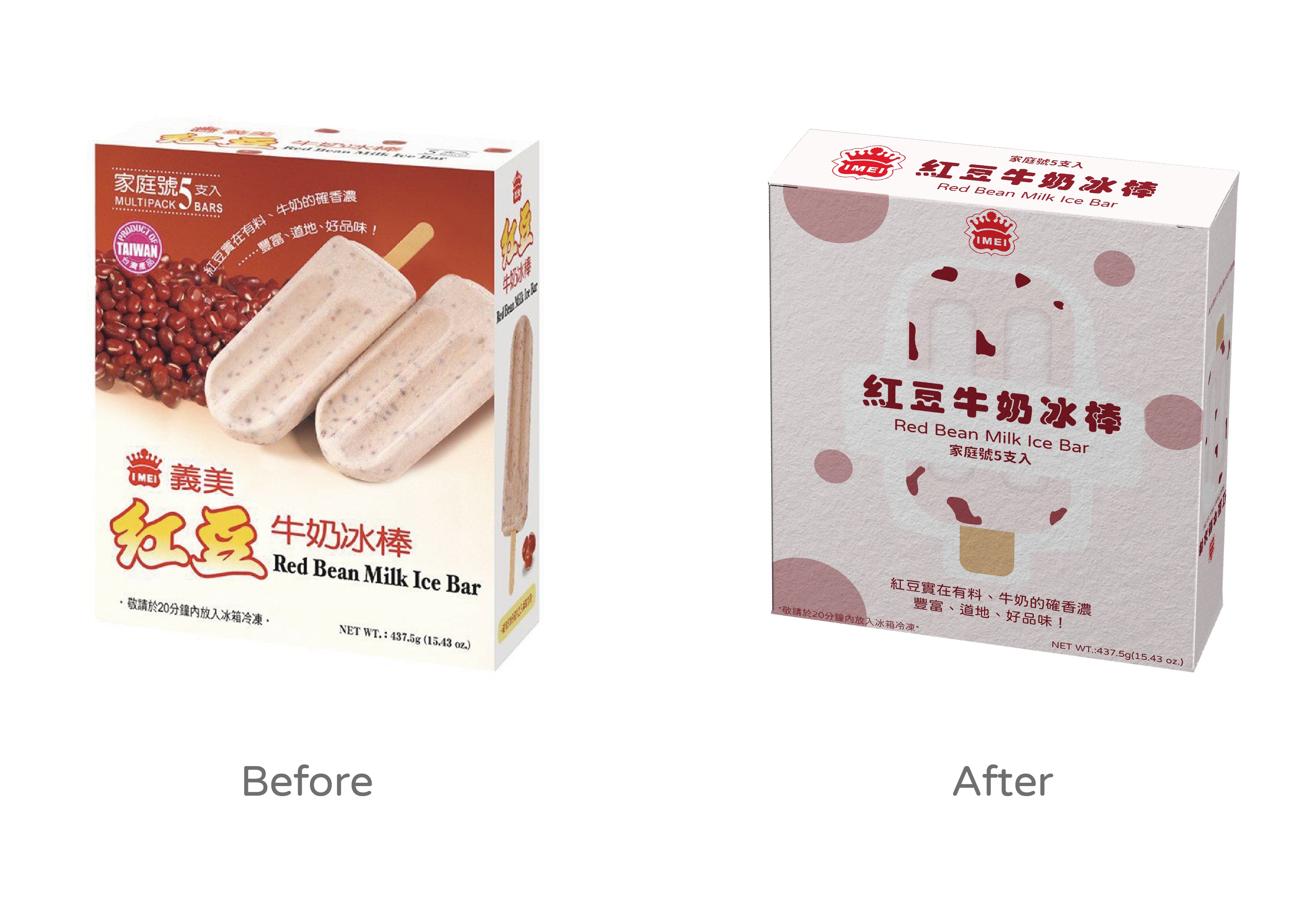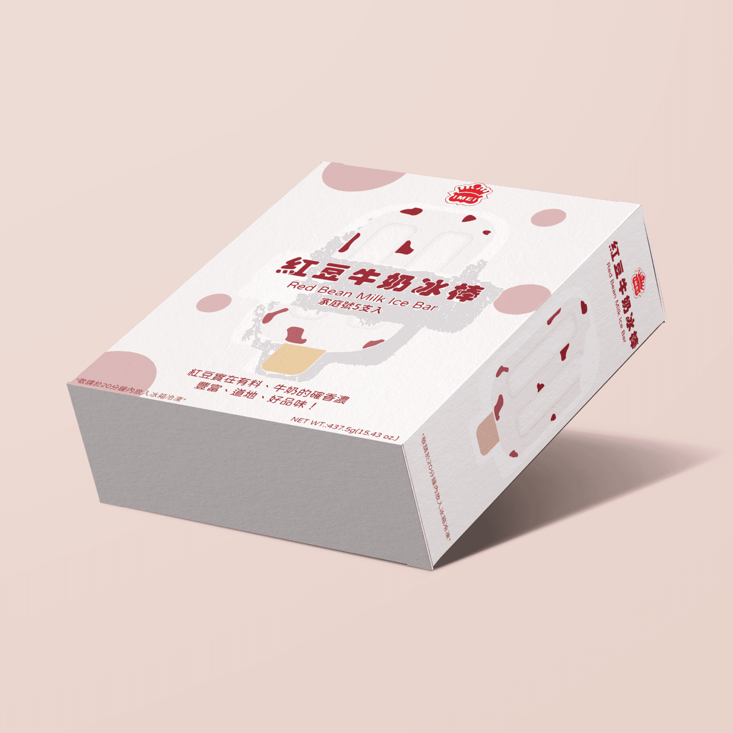 由商品原料紅豆牛奶發想,希望可以用更活潑又值觀的方式設計商品包裝
