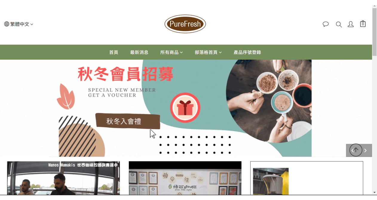 使用輪播圖,用於加強品牌印象與當季促銷活動,下方標籤幫助使用者快速找尋所需商品